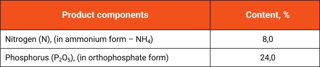 - It is characterized by complete solubility, low crystallization temperature, low salt index, high accessibility of nutrients, especially phosphorus during seed germination at initial stages of plant growth and development.
