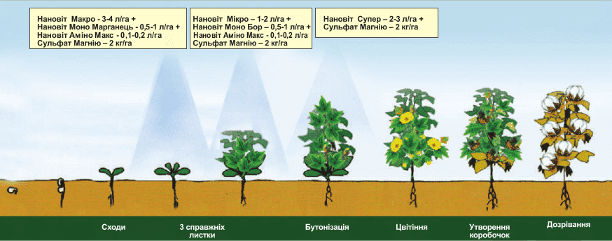 При кожному внесенні можна додавати НАНОВІТ Гуміно Макс або НАНОВІТ Гумат Аміно Макс - 0,5 л/га та карбамід.