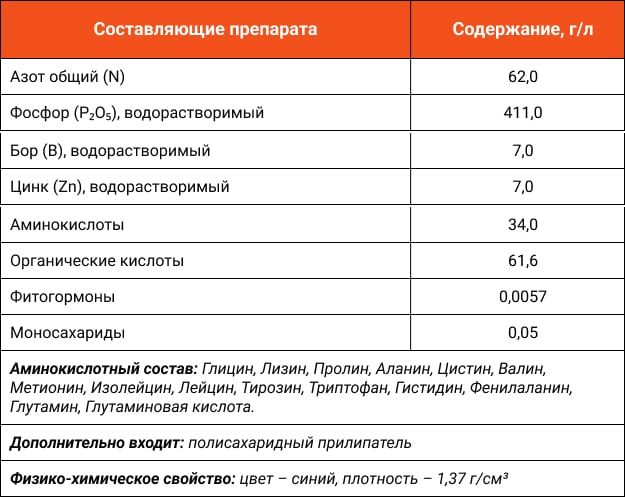 Высококонцентрированное фосфорное (P) удобрение в сочетании с азотом (N), бором (В) и цинком (Zn) на основе уникального, многофункционального биологически активного комплекса «NANOACTIV», содержащего 15 L-аминокислот, широкий спектр фитогормонов, моносахаридов и органических кислот.