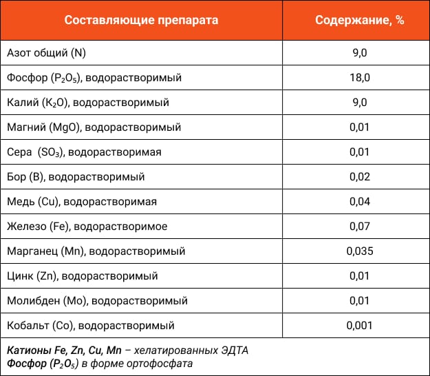 - Характеризуется полной растворимостью, низкой температурой кристаллизации, низким солевым индексом, высокой доступностью элементов питания, особенно фосфора в период прорастания семян и начальных этапах органогенеза