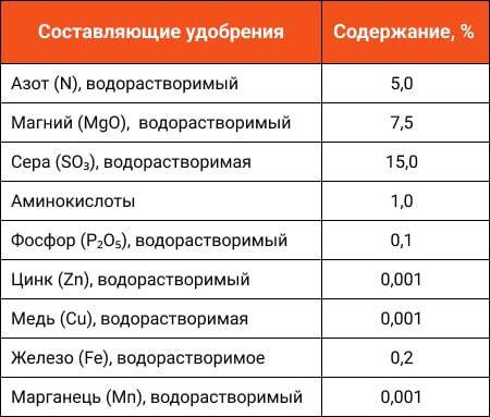 - Благодаря азоту, аминокислотам и микроэлементам удобрение имеет более высокую эффективность по сравнению с кристаллическими и гранулированными формами сернокислого магния